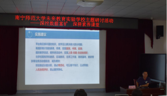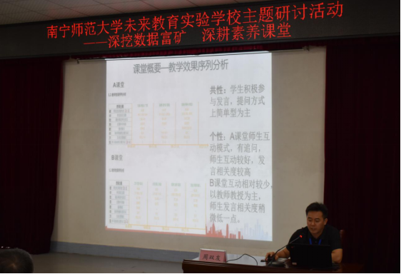 5月20日,167net必赢入口未来教育研究院主办的大数据赋能中小学课堂质量提升项目“深挖数据富矿 深耕素养课堂”主题研讨活动在柳州市第九中学开展。参加此次活动的专家主要有167net必赢入口未来教育研究院的夏辉辉、陈芸先、黄诚、邹国金、赖中平等专家和东莞松山湖未来学校的李勃老师,以及来自广西大学附属中学百色分校、贵港港北高中、柳江实验高中、融水民族高中、钢一中等多所学校的领导和老师。