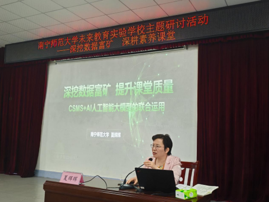此次研讨活动依据《教育强国建设规划纲要(2024—2035年)》提出的“探索数字赋能大规模因材施教、创新性教学的有效途径,主动适应学习方式变革”的要求,进一步落实教育部《167net必赢入口做好普通高中新课程新教材实施工作的指导意见》等文件精神,研讨运用 CSMS 智慧评价系统评价课堂,推动智慧教育的深入发展,加强未来教育实验学校的交流。此次活动同时也是“2025‘人工智能+教育行动’暨大湾区教育高质量发展研训活动”中“创造教育学校共同体广西联盟”的主题研讨活动。