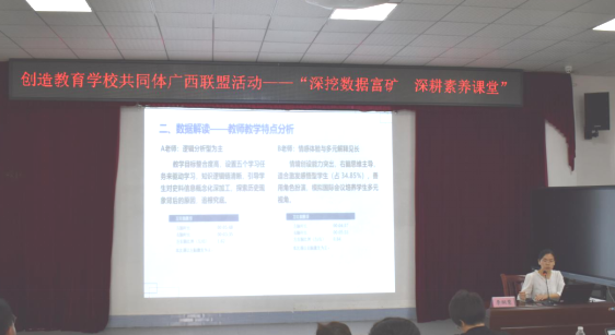 下午的活动,继续由柳州市九中语文何琳、英语罗键、地理覃清丹、历史李炯慧、政治周双友五位老师根据CSMS的数据做学科课堂分析。