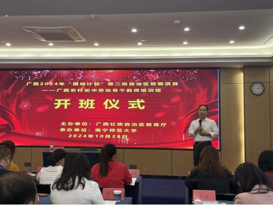 本次培训为期12天,采用“集中培训+跟岗实践”的形式,聚焦广西农村初中劳动骨干教师的队伍建设,除专家集中授课培训外,还将到多所学校进行跟岗学习。