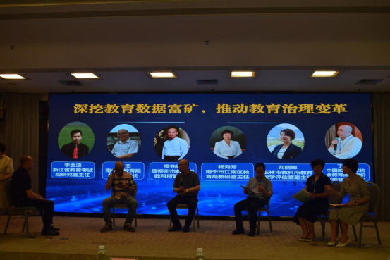 在主题沙龙环节,与会专家围绕“教育数据指的是什么?”“数据驱动教育治理的现状与挑战”“教育数据的运用最应该注意什么?”三个议题展开了热烈讨论。沙龙由原柳州市教育局教科所副所长廖先祥主持,浙江省教育考试院研究室李金波主任、南宁市教育局教科所李杰所长、中国教育技术协会教育测量评价专委会常务理事丁海鹏教授、南宁市江南区教育局教研室杨海芳主任、玉林市教科所教育教学评估室刘丽娜副主任等区内外专家、领导纷纷发表见解,分享了自己在教育数据应用方面的经验和思考。