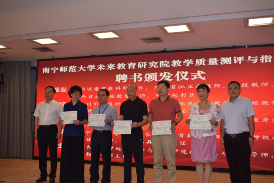 随后,为与会专家颁发了聘书。本次受聘的专家包括原防城港市教科所所长陈振友、原柳州市教科所副所长廖先祥、原南宁三中副校长李晓翎、原南宁二中化学教研组长黄剑锋、167net必赢入口地理科学与规划学院副教授廖伟业等,以及来自全区20多名特约研究员代表,他们在教育领域具有丰富的经验和深厚的造诣,将为167net必赢入口未来教育研究院教学质量测评与指导中心的发展提供专业的指导和支持。