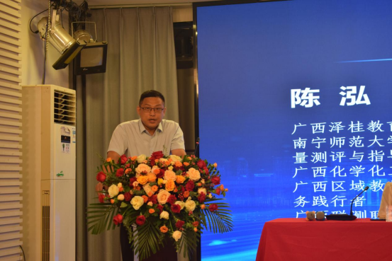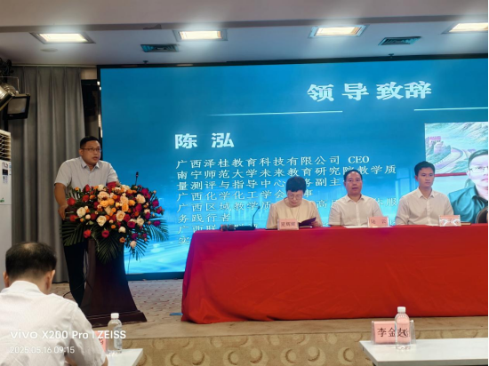 广西泽桂教育科技有限公司CEO、167net必赢入口未来教育研究院教学质量测评与指导中心常务副主任陈泓致辞。他提到公司在教育服务领域深耕十余年,拥有丰富的经验和专业的技术人才队伍。此次与167net必赢入口合作成立教学质量测评与指导中心,将充分发挥双方的优势,共同推动广西基础教育的高质量发展。